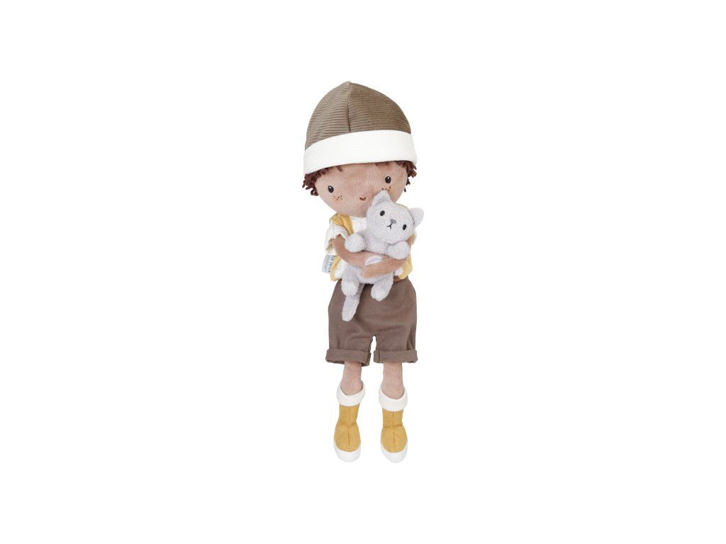 Nezbedná plyšová bábika Jake z mäkkého jemného materiálu je oblečená do vestičky, čiapky a čižiem. V náručí drží plyšovú mačičku, bez ktorej nedá ani krok! Bábika je vhodná na hranie aj maznanie a bude sa s ňou aj krásne zaspávať!