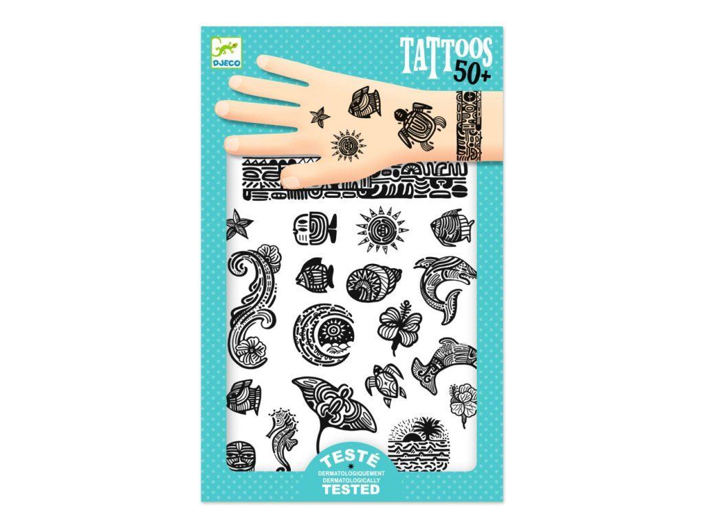 Dva hárky dočasných tetovaní inšpirovaných slávnym Polynézskym tetovacím štýlom. Perfektné pre ten skutočný dojem tetovania! Vzory s cestovaním a plážovými vibráciami! Sú predrezané pre jednoduché použitie. Jednoducho preneste s trochou vody.