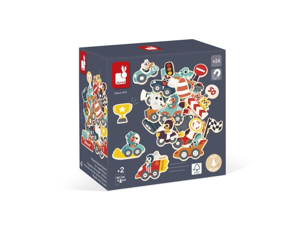 Drevené magnetky Autá 24 ks JANOD