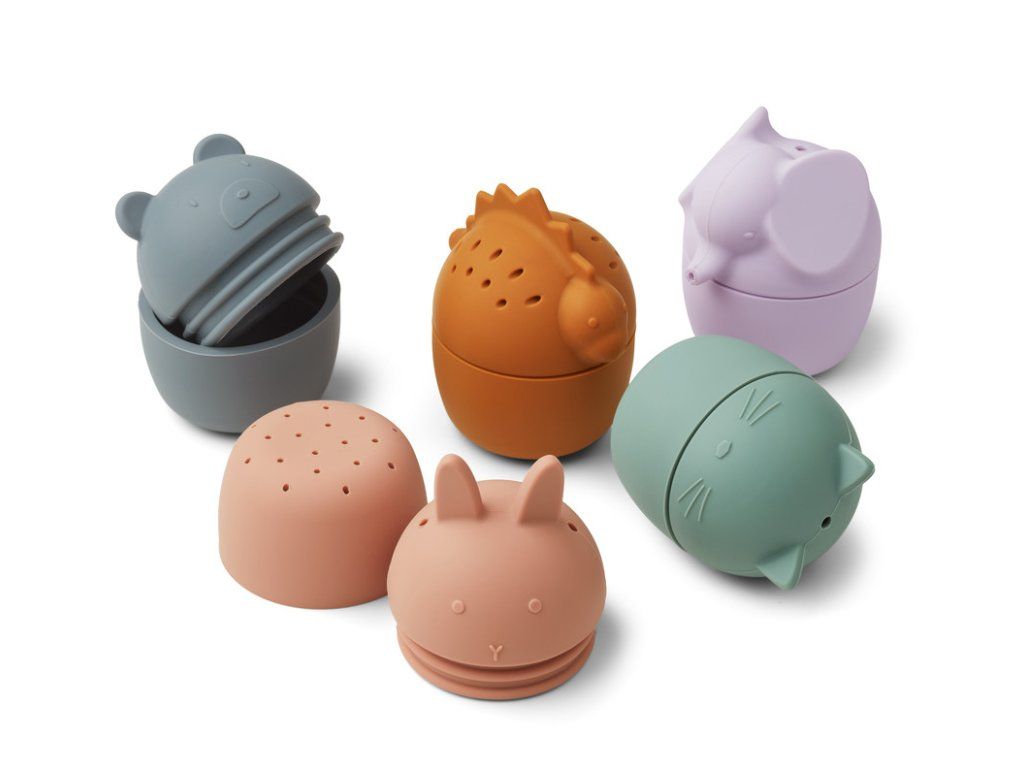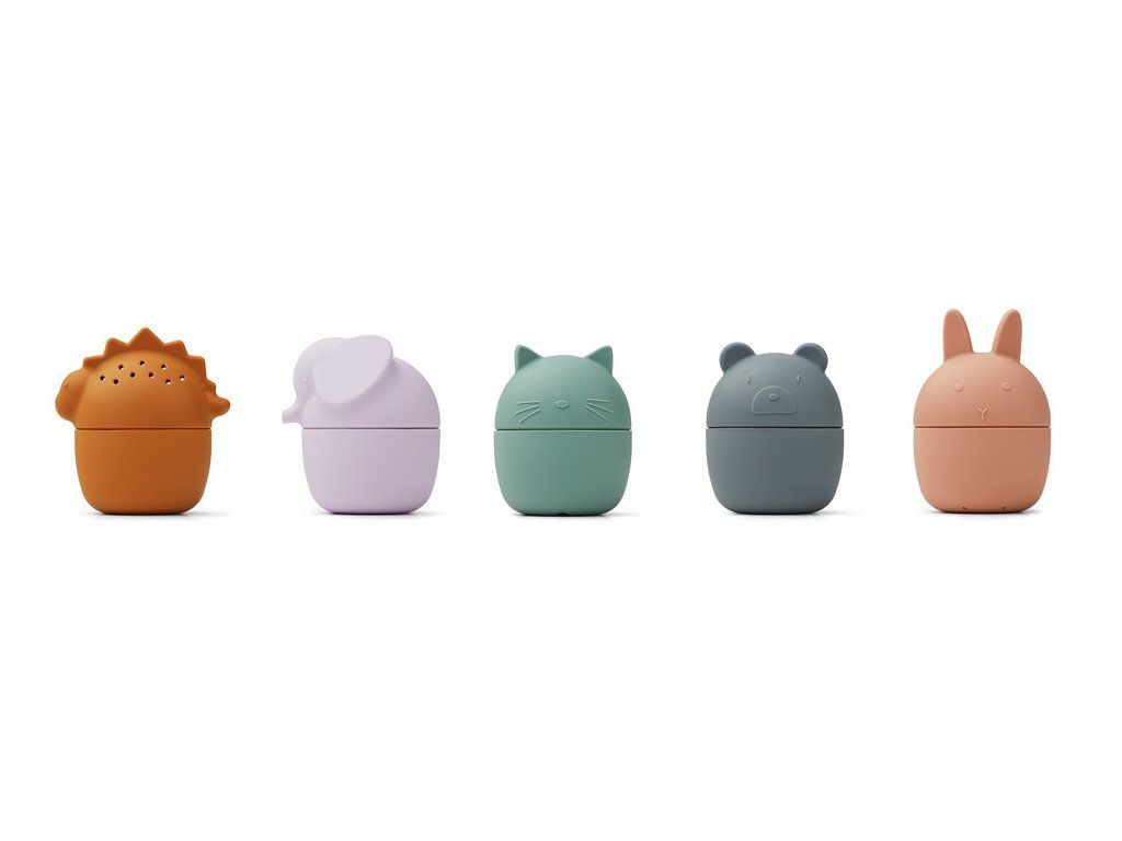 Detské hračky na kúpanie Gaby urobia z kúpania vo vode obrovskú zábavu. Tvarované ako dino, slon, mačka, medveď a králik, rozkošné hračky plávajú dokonale na vode a ľahko sa chytia a držia. Každá z nich má na spodnej časti rôzne dierky a preto slúžia ako sitko. Zaručená zábava vo vode.