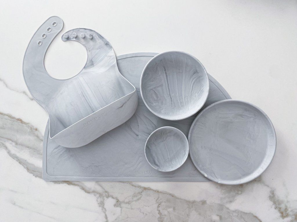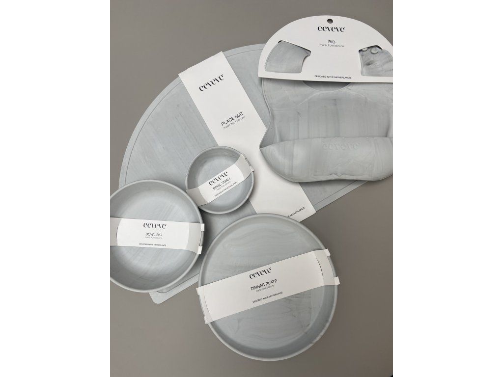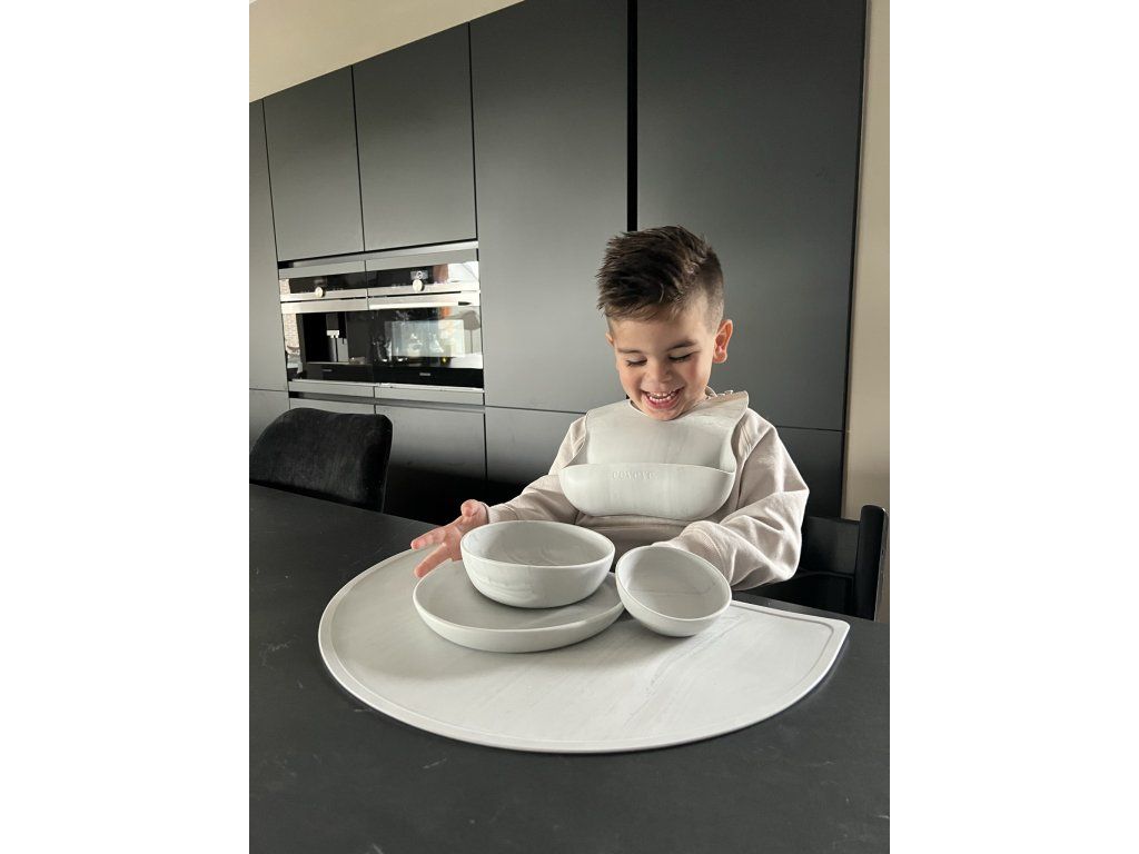 Elegancia, praktickosť a prémiové prevedenie sa spájajú v jedálenskom sete Eeveve, ktorý je navrhnutý tak, aby robil radosť deťom aj rodičom. Set je vyrobený z kvalitného potravinárskeho silikónu, no na prvý pohľad zaujme luxusným mramorovým vzhľadom – ideálny pre rodiny, ktoré milujú krásny a harmonický interiér.