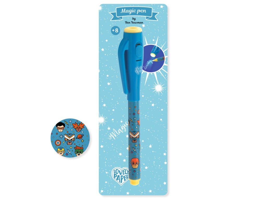 Na písanie tajných správ. Obsahuje neviditeľný atrament, ktorý sa ukáže len pod UV svetlom! Je to ako kúzlo! UV svetlo je vo vrchnáku pera, spolu s tlačidlom na zapnutie/vypnutie svetla a batériami (sú súčasťou balenia, priamo vo vrchnáku pera). Vrchnák má praktický klips na pripnutie pera na zošit. Pero má fixkový hrot. Pre radosť zo zapisovania a tajomstiev! Kolekcia Lovely paper ponúka čarovne ilustrovaný papiernický tovar, písacie a kresliace potreby pre deti aj dospelých.