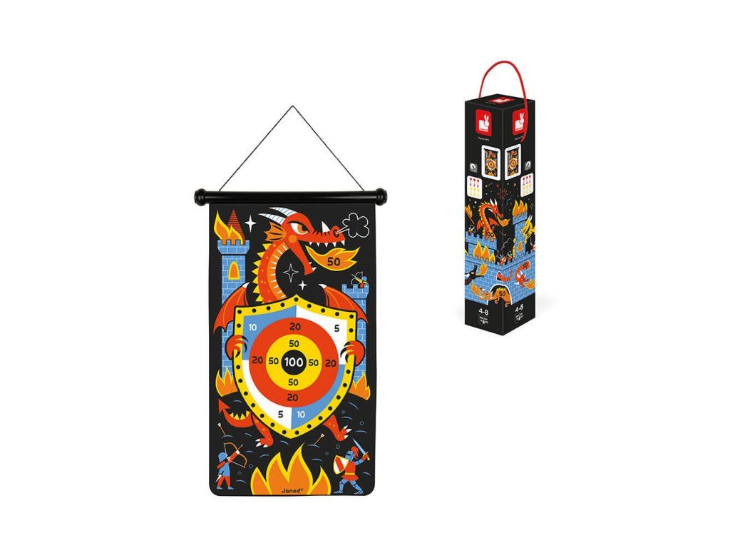 Obojstranný magnetický terč je možné zavesiť na stenu, kľučku alebo strom a 6 magnetických šípok bez hrotov, ktoré zabránia zraneniu a umožnia si tak hru zahrať už od ranného veku. Body kam máte mieriť sú na 1 strane usporiadané do kruhu a na opačnej strane rozmiestnené po celej ploche.