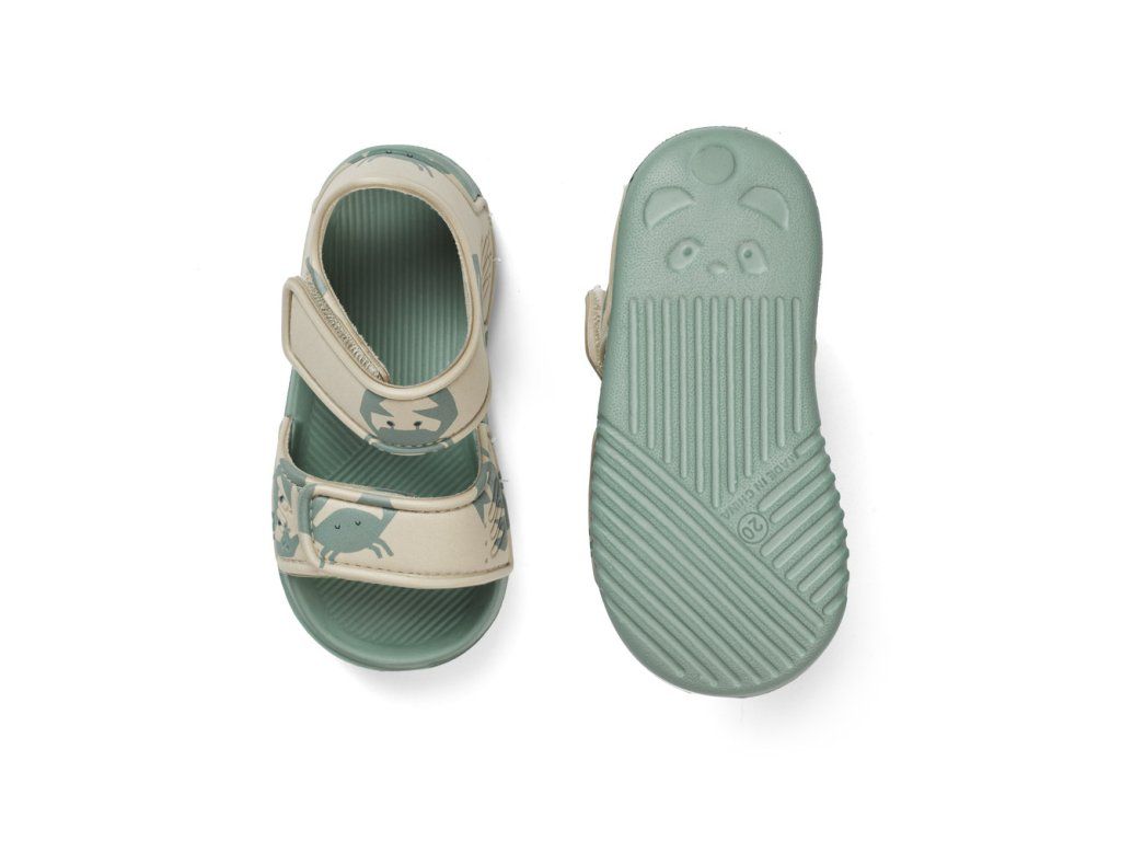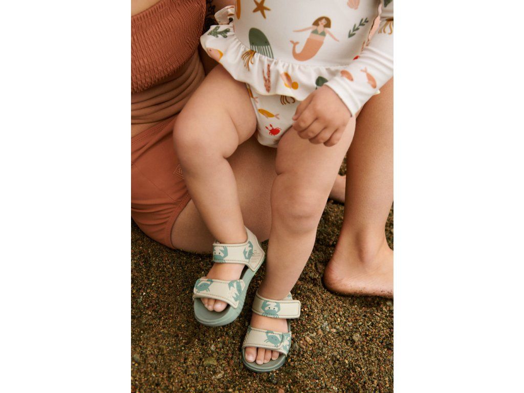 Mäkké penové sandále Blumer sú ľahké, pohodlné a flexibilné. Jednoducho sa obúvajú a vyzúvajú vďaka zapínaniu na suchý zips. Podrážky zanechávajú roztomilé stopy v tvare pandy na akomkoľvek mäkkom povrchu - roztomilý radostný detail.