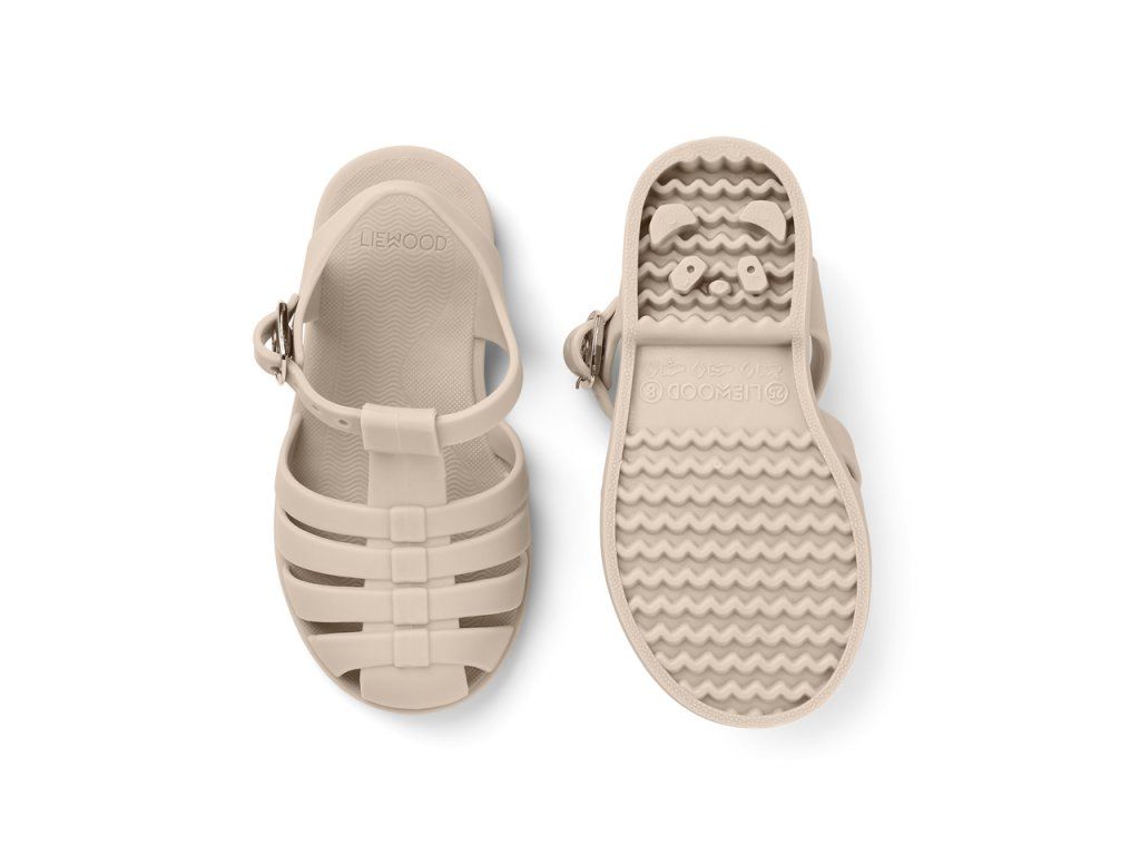 Bre Sandals sú pružné detské plážové sandále bez škodlivých chemikálií. Perfektné na pláž, pretože guma neabsorbuje žiadnu vodu a vaša ratolesť zanechá na akomkoľvek mäkkom povrchu roztomilé stopy v tvare pandy.